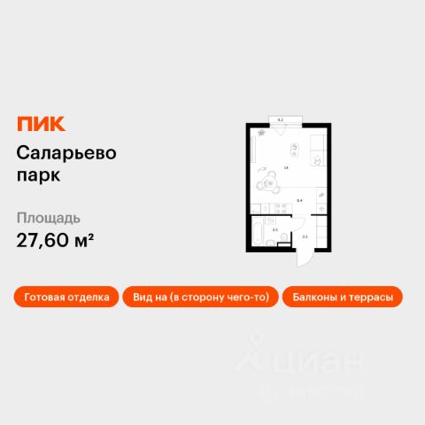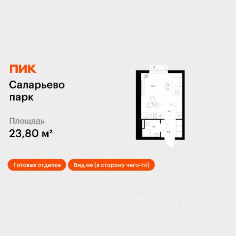 Продаётся квартира-студия площадью 28,1 кв.м на 16 этаже 24 этажного дома (Корпус 82.8, Секция 8) проекта ПИК Саларьево парк. Светлый просторный подъезд на уровне земли, функциональная планировка, большие окна, c отделкой. Жилой район "Саларьево парк" расположен в Новой Москве, в четырёх километрах от МКАД по Киевскому шоссе. Две станции метро: "Саларьево" и "Филатов луг", — находятся в пешей доступности от проекта. Дойти до них можно за 510 минут. В квартале уже создана качественная среда, где есть абсолютно всё для полноценной жизни, работы и отдыха. Благодаря удобному расположению проекта всё важное будет рядом: детские сады, школы, кафе и рестораны, шопинг в торговых центрах, фитнес и даже аэропорт. Все корпуса в квартале гармонично сочетаются, образуя единую городскую среду. Между собой их объединяет невысокая этажность и натуральная цветовая гамма. Здесь приятно гулять и проводить время на улице всей семьёй. В "Саларьево парке" создана уникальная образовательная среда, включающая в себя шесть школ, рассчитанных на 6 250 учеников. Две из них уже открыты, их посещает 2 300 детей. Также на территории "Саларьево парка" находится 12 детских садов, один из которых с бассейном. Сейчас уже открыты 7 садов. В "Саларьево парке" открыта уникальная игровая площадка — PlayHub "Оригами". Здесь есть ручей, горка-труба и рельефные холмы. Взрослые смогут отдохнуть в уютном кафе, пока дети играют. Также на территории проекта есть SportHub — большая спортивная зона, разделённая по интересам и возрастам. Здесь можно заниматься разными видами спорта: футболом, баскетболом, волейболом и стритболом. Зимой центральную часть площадки превращают в каток. Во дворах-парках жилого квартала есть места для отдыха, детские и спортивные площадки. На первых этажах домов расположены магазины, кафе и полезные сервисы. Также вблизи проекта есть несколько масштабных торговых центров. До ТЦ "Саларис" пять минут пешком, до "Рио", Metro Cash & Carry и "Леруа Мерлен" — пять минут на автомобиле. Артикул 1033299 (Застройщик ООО "Специализированный Застройщик "Тирон")