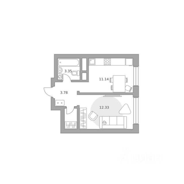 Продаётся 1-комнатная квартира 1523, площадью 32,50 м², на 19 этаже в ЖК "Ильинойс" корпус 3. Стоимость — от 8166954 руб. Квартира без отделки, планировка односторонняя, окна на улицу.