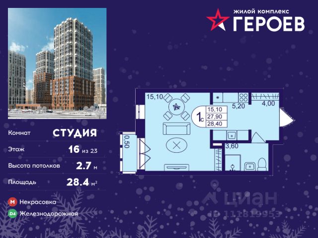 • ✓ В базе Циан 15 квартир-студий на 16 этаже рядом с метро Ольгино