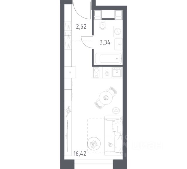 В продаже студия в корпусе 1 ЖК 'Пятницкое 58'. Квартира располагается на 16 этаже, общая площадь 22.86 м2.