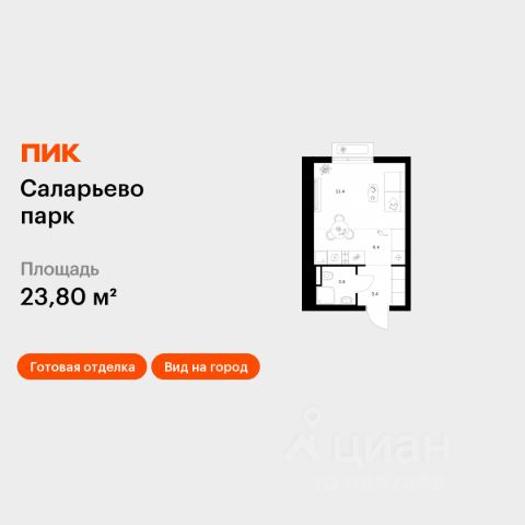 Продаётся квартира-студия площадью 28,2 кв.м на 16 этаже 24 этажного дома (Корпус 82.7, Секция 7) проекта ПИК Саларьево парк. Светлый просторный подъезд на уровне земли, функциональная планировка, большие окна, c отделкой. Жилой район "Саларьево парк" расположен в Новой Москве, в четырёх километрах от МКАД по Киевскому шоссе. Две станции метро: "Саларьево" и "Филатов луг", — находятся в пешей доступности от проекта. Дойти до них можно за 510 минут. В квартале уже создана качественная среда, где есть абсолютно всё для полноценной жизни, работы и отдыха. Благодаря удобному расположению проекта всё важное будет рядом: детские сады, школы, кафе и рестораны, шопинг в торговых центрах, фитнес и даже аэропорт. Все корпуса в квартале гармонично сочетаются, образуя единую городскую среду. Между собой их объединяет невысокая этажность и натуральная цветовая гамма. Здесь приятно гулять и проводить время на улице всей семьёй. В "Саларьево парке" создана уникальная образовательная среда, включающая в себя шесть школ, рассчитанных на 6 250 учеников. Две из них уже открыты, их посещает 2 300 детей. Также на территории "Саларьево парка" находится 12 детских садов, один из которых с бассейном. Сейчас уже открыты 7 садов. В "Саларьево парке" открыта уникальная игровая площадка — PlayHub "Оригами". Здесь есть ручей, горка-труба и рельефные холмы. Взрослые смогут отдохнуть в уютном кафе, пока дети играют. Также на территории проекта есть SportHub — большая спортивная зона, разделённая по интересам и возрастам. Здесь можно заниматься разными видами спорта: футболом, баскетболом, волейболом и стритболом. Зимой центральную часть площадки превращают в каток. Во дворах-парках жилого квартала есть места для отдыха, детские и спортивные площадки. На первых этажах домов расположены магазины, кафе и полезные сервисы. Также вблизи проекта есть несколько масштабных торговых центров. До ТЦ "Саларис" пять минут пешком, до "Рио", Metro Cash & Carry и "Леруа Мерлен" — пять минут на автомобиле. Артикул 1033067 (Застройщик ООО "Специализированный Застройщик "Тирон")