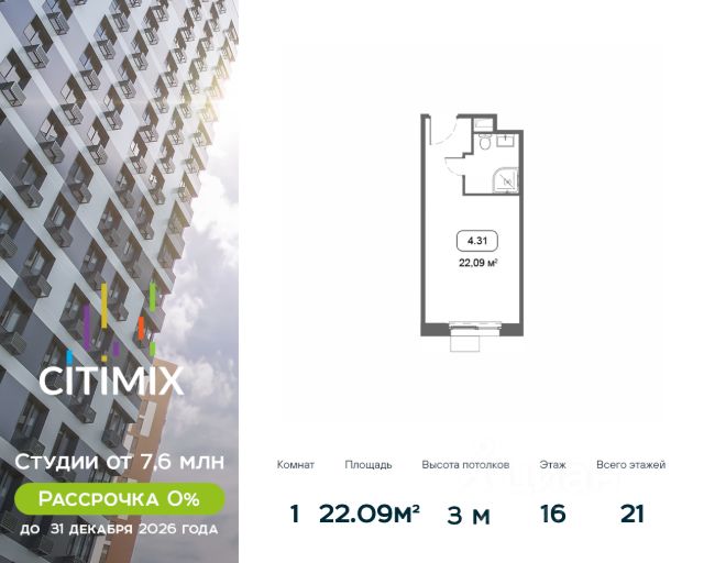Прямая продажа от застройщика. Продаётся студия общей площадью 20.70 м² с предчистовой отделкой в ЖК VEER на 16-м этаже 46 этажного дома. Жилой комплекс бизнес-класса VEER от компании MR Group — это футуристичный мультиквартал, расположенный в престижной локации на западе Москвы. Благодаря переменной высоте башен — двух 22-этажных, 46-этажной и двух 59-этажных — возникает динамичность в силуэте комплекса, а его яркий образ вносит разноплановость в архитектурный пейзаж района. Расположение и транспортная доступность: • VEER удобно расположен в непосредственной близости от Кутузовского проспекта, обеспечивая быстрый доступ к центральным районам Москвы • Комплекс находится непосредственно напротив самого большого природного заказника в Москве - парка "Долина реки Сетунь", а за семь минут можно доехать до памятника садово-паркового искусства, Троекуровского леса. • Всего в 15 минутах - центр города, самая престижная бизнес-школа управления России "Сколково", дом творчества "Переделкино". Инфраструктура: Разнообразить свой день резиденты VEER смогут также проводя больше времени на свежем воздухе. Двор разделен на 4 зоны разных эмоций и действий, которые пересечены и соединены веерными прогулочными маршрутами: • Спортивная площадка устроена в глубине "Кленовой рощи" • В "Чайном домике" будет создан навес с утеплением для отдыха в любую погоду • Площадки для детей воплотятся в "Волшебный лес" с цветами, зеркалами и световым дизайном • "Центральная площадь" устроена у водного оазиса живописного пруда. Компания MR Group предлагает своим клиентам специальные условия приобретения квартир в рамках программ ипотечного кредитования от банков-партнеров.