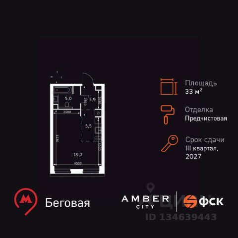 УСПЕЙ ПО СЕМЕЙНОЙ ИПОТЕКЕ! Премиум со скидками до 35%! Прямая продажа от застройщика! Жилой Комплекс премиум-класса. Продаётся квартира-студия номер 2 общей площадью 33.6 кв.м. на 2-м этаже 46 этажного здания. Отделка Whitebox. Цена с учётом скидки. Особенности квартиры: - Линейная планировка - максимальная функциональность и удобство. - Увеличенная ширина окна/окон - больше света и визуального простора. - Увеличенное количество окон - дополнительное освещение и свежий воздух. - Ниша под стиральную машину - удобство и экономия пространства. - Гибкая планировка - создайте пространство по своему вкусу. - Можно оборудовать рабочее место - комфорт для работы и учёбы. - Линейная кухня - функциональность и практичность в одном решении. - Проходная кухня-гостиная - идеальное пространство для общения и готовки. - Ниша под шкаф - компактное и удобное место для вещей. Квартира с предчистовой отделкой (White box). Вам не придется заниматься черновыми и трудоёмкими работы, а чистовую отделку и дизайн - сделайте на свой вкус. Информация о комплексе: Amber City - это не просто квартал. Это место, куда ведут все маршруты, где рождается вдохновение работать и творить, где счастлива семья и жизнь кипит 24/7. Модная архитектура, высокотехнологичные решения и самодостаточная инфраструктура приближают Amber City к лучшим районам Гонконга и Нью-Йорка. Потрясающие виды на Москва-Сити и центр позволяют заряжаться их амбициозностью, не подчиняясь суете. Стремящиеся ввысь небоскребы, благоустроенный парк с зонами отдыха для взрослых и детей, а также многочисленные объекты инфраструктуры возводятся в западной части центра Москвы. Транспортная доступность: Квартал отличается исключительной транспортной доступностью: большая часть значимых мест Москвы находится на расстоянии 15-20 минут. Такое расположение позволит полностью погрузиться в деловую и культурную жизнь столицы и тратить на дорогу только необходимый минимум времени. Общественный транспорт: - Станция метро "Беговая" - 5 минут пешком - Станция "Беговая" (МЦД-1) - 5 минут пешком - Ж/д станция Беговая - 12 минут пешком - Остановка "2-й Хорошёвский проезд" - 3 минуты пешком - Станция метро "Звенигородская" (строящаяся) - 10 минут пешком На автомобиле: - Звенигородское шоссе - 3 минуты - TTK - 5 минут - Хорошёвское шоссе - 9 минут - Садовое кольцо - 12 минут - Красная Пресня - 15 минут - Тверская - 20 минут - Серебряный бор - 8 минут - Строгинский затон - 8 минут - Москва-Сити - 10 минут - Кремль - 20 минут - Аэропорт Шереметьево - 40 минут Внутренняя инфраструктура: Умелая работа над ландшафтом позволила правильно зонировать многоуровневое пространство, общей площадью 6 гектаров, открывая разнообразные возможности для резидентов Amber City и их детей. Главной артерией квартала станет собственный зеленый бульвар. Он начнется с площади у входа на территорию и, объединяя все внутренние пространства, пройдет через ключевые площади с арт-объектами, водными зонами и а