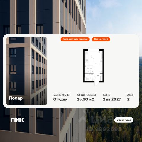 Продаётся квартира-студия площадью 19,4 кв.м на 2 этаже 14 этажного дома (Корпус 1.6, Секция 3) проекта ПИК Полар. Светлый просторный подъезд на уровне земли, функциональная планировка, большие окна, c отделкой. "Полар" расположен в двух минутах пешком от Медведковского заказника и вблизи метро "Медведково". Жилой квартал "Полар" строится на севере Москвы в районе Северное Медведково, в 17 минутах пешком от станции метро "Медведково". Все дома в "Поларе" - с индивидуальным дизайном. Над проектом работали сразу два архитектурных бюро - голландцы de Architekten Cie и российская студия Kamen Architects. Благодаря сочетанию двух разных направления в архитектуре, весь квартал будет выглядеть очень оригинально. У голландцев получились дома с чёткими линиями, динамичной архитектурой и панорамными балконами. А в башне Kamen отражается стремительность большого города и созерцательное спокойствие лесопарка. В квартал входит 6 жилых домов разной высоты, собственный детский сад, подземный двухэтажный паркинг, места для спорта, прогулок и отдыха. В просторных лобби - два выхода на уровне земли без порогов и пандусов. На входе установлены IP-домофоны, которыми можно управлять со смартфона. А на первых этажах откроются магазины, кафе и разные полезные сервисы. С верхних этажей "Полара" откроется впечатляющий вид на Медведковский заказник и Москву. В наших дворах мы установим удобные лавочки со встроенными портами USB и Type-C для зарядки мобильных устройств. Не нужно будет возвращаться домой, чтобы зарядить смартфон или ноутбук: можно весь день работать на свежем воздухе или сколько угодно снимать на видео играющего на площадке ребёнка. В шаговой доступности город построит общеобразовательную школу на 350 мест. Район Северное Медведково, где расположен "Полар", входит в городскую программу "Индустриальные кварталы". По ней бывшие промышленные зоны переделывают в комфортные для жизни пространства. Рядом с "Поларом" уже есть спортивный комплекс, новая школа, МФЦ и поликлиники. Артикул 876231 (Застройщик АО "Специализированный застройщик "ТМП 20")