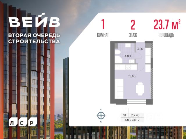 Продажа квартир-студий на 2 этаже рядом с метро Борисово