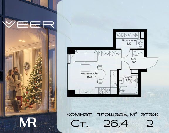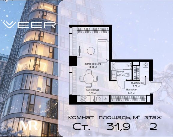 Старт продаж новой очереди! Продаётся студия общей площадью 30.90 м² без отделки в ЖК VEER на 2-м этаже 38 этажного дома. VEER.2 — вторая очередь футуристичного квартала бизнес-класса VEER. Это новая экосистема в престижном Западном округе Москвы, поражающая масштабностью внутренней инфраструктуры. ЖК находится всего в 5 минутах от Кутузовского проспекта и в 15 минутах от Сколково. Ансамбль из четырех стеклянных башен с доминантой в 237 метров разработан по принципу современного урбанизма и выражен в лаконичных объемах — параллелепипедах со сглаженными углами, которые придают зданиям утонченный вид. Расположение и транспортная доступность: • Образовательный комплекс в составе топовой школы, состоящий из двух зданий: основное на 1500 школьных и 450 дошкольных мест, отдельное здание детского сада на 300 мест. • Парк "Долина реки Сетунь" площадью более 700 гектаров • Рядом МГУ, МГИМО, РАНХиГС и Академия ФСБ • 15 минут по Кутузовскому проспекту до ужина в центре с видом на Москву-реку • 18 минут пешком до м. "Давыдково" • Открытие новых станций метро в шаговой доступности в будущем Инфраструктура: Двор в VEER.2 — это ассиметричные холмы, каменные "лабиринты", зеленые ковры и хвойные островки с единой живой экосистемой. Здесь есть все: • Павильон умиротворения Место отдыха под навесом в спокойной части двора, окруженное деревьями. • Активная тропа Тактильная дорога из камней разного диаметра для расслабляющих прогулок. • Бизнес-гарден Оборудованное пространство для работы на свежем воздухе со столом и встроенными розетками. • Детская площадка Двухуровневая площадка "Ботаника" с песочницей, переговорной трубой и горкой "Дружба". Компания MR предлагает своим клиентам специальные условия приобретения квартир в рамках программ ипотечного кредитования от банков-партнеров.