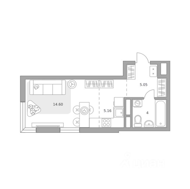 Продаётся студия. Один собственник, от момента приобретения на котлован. В комнате желательна косметика.