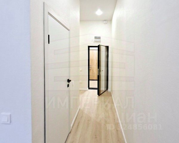 На стенах поклеены обои под покраску, на полу постелен ламинат с плинтусами и откосами. Есть вытяжная вентиляция в санузле и на кухне, выходы хв/гв, место под раковину на кухне. Кроме того, в помещениях уже есть выключатели освещения, розетки для бытовой техники и роутера, а также сделаны закладные для оптоволокна для интернета.