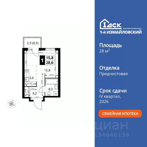 Прямая продажа от застройщика! Жилой Комплекс Комфорт класса. Продаётся квартира-студия номер 6 общей площадью 28.6 кв.м. на 2-м этаже 25 этажного здания. Предчистовая отделка. Цена с учётом скидки. Особенности квартиры: - Организуем показ в удобное для вас время! - Линейная планировка - максимальная функциональность и удобство. - Увеличенное количество окон - дополнительное освещение и свежий воздух. - Гибкая планировка - создайте пространство по своему вкусу. - Место для игры/занятия спортом - идеальное пространство для активных детей. - Можно оборудовать рабочее место - комфорт для работы и учёбы. - Ниша под шкаф - компактное и удобное место для вещей. - Балкон - открытое пространство для отдыха. Квартира с предчистовой отделкой. Вам не придется заниматься черновыми и трудоёмкими работы, а чистовую отделку и дизайн - сделайте на свой вкус. Информация о комплексе: ЖК "1-й Измайловский" в восточной части Москвы: идеальное место для жизни в окружении 14 000 гектаров леса. Наслаждайтесь лыжными прогулками зимой и пробежками летом в сиреневом саду и лесопарках. Комплекс отгорожен от шоссе застройкой первой линии и садами здоровья. Из окон открываются виды на парк "Лосиный остров" и зеленые дворы. Близость к природе и спортивным объектам создаёт атмосферу здорового образа жизни. Транспортная доступность: Не более 2,5 км до станций метро "Щёлковская" и "Черкизовская" и МЦК "Локомотив". Щёлковское шоссе соединяет квартал с Северо-восточной хордой и МКАД, Центральным автовокзалом и Восточным железнодорожным вокзалом. Две автобусные остановки в паре минут ходьбы и 11 маршрутов общественного транспорта. На автомобиле 3 минуты до СВХ 12 минут до ТТК 15 минут до Садового кольца Внутренняя инфраструктура: ЖК расположен в историческом районе Москвы с развитой инфраструктурой. В шаговой доступности: 6 детских садов (включая собственный на 125 мест), 3 школы, поликлиники, торговые центры и парки. Проект создан для здорового образа жизни: рядом стадионы, спортивные объекты для футбола, баскетбола и конного спорта, а также более 30 км беговых и велодорожек. Всё для активной жизни в окружении зелени и современной инфраструктуры. Квартира с предчистовой отделкой - ваш дизайн без черновых работ