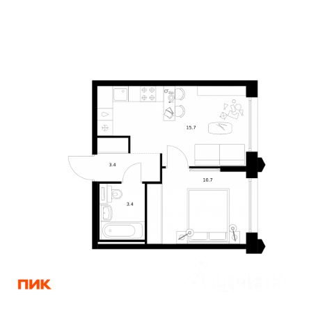 Смарт-студия для молодых специалистов или тех, кто ценит личное пространство и независимость. -В квартире предусмотрено классическое остекление -Удобная ниша для хранения вещей в коридоре -Кухня-гостиная с грамотно зонированной кухней и зоной отдыха Смарт-студия подойдет тем, кто ищет функциональное и доступное жилье. Молодой район для жизни "Акценты" в классе бизнес-лайт — точка роста на севере Москвы. Он предлагает элегантные и строгие фасадные решения, авторский ландшафтный дизайн, а также функциональные и доступные по цене планировки. Проект находится в семи минутах пешком от станции метро "Лианозово" и одноименной МЦД-1. Добраться до МКАД можно будет за 10 минут на авто, а дорога до центра займет около 20 минут. Жилой комплекс, расположенный в районе Восточного Дегунино, предлагает развитую инфраструктуру для тех, кто ценит выбор. Он имеет удобный доступ не только к транспорту, но и к паркам, школам, садам, больницам и другим социальным объектам. В пешей доступности находятся 4 поликлиники, 5 школ, 6 детских садов, 3 бассейна и баскетбольная академия. Еще рядом есть несколько лесопарков: "Лианозово" с аттракционами и спортивными площадками для тенниса, волейбола и баскетбола, "Останкино" с конным клубом, прудом и пейнтбол-площадками. А "Северные Дубки" — это завораживающее пространство для прогулок под кронами вековых дубов, берез и лип. Кроме того, в районе не будет скучно и юным жителям. Можно оттачивать трюки в скейтпарке "Союз". Ловким и прыгучим советуем записаться в акробатический центр "Белка".