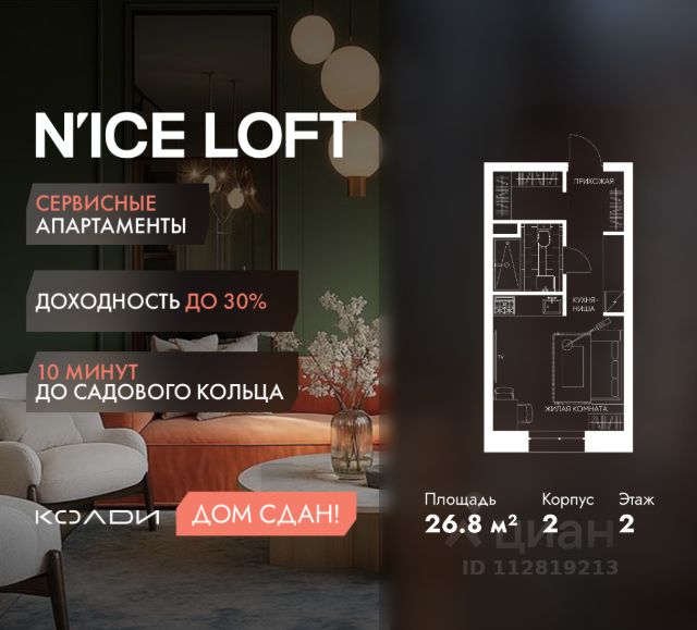 Продается студия-апартаменты в сданном доме, площадью 21.7 кв. м на втором этаже современного 21-этажного дома. NICE Loft - первый апарт-комплекс в России, представляющий собой полноценный спортивный кластер. Данный ЖК станет точкой притяжения и сосредоточения спортивной жизни мегаполиса. Высокие потолки в три метра создают ощущение простора. Окна выходят во двор, поэтому вас не будет беспокоить шум улицы. Апартаменты находятся в шаговой доступности от станции метро Калитники — всего 10 минут пешком. В данном ЖК предусмотрено все удобства для комфортного проживания. В районе развита инфраструктура: рядом находятся школы, детские сады и клиники. Множество магазинов и супермаркетов позволят вам без труда находить все необходимое. Отличная транспортная доступность помогает быстро добраться до любой точки города. На фото пример реализации ремонта в данной студии с учетом квадратных метров. Документы готовы, ключи на руках. Без обременений. Один собственник. Быстрый выход на сделку. Оперативные показы. Звоните и приходите на просмотры.