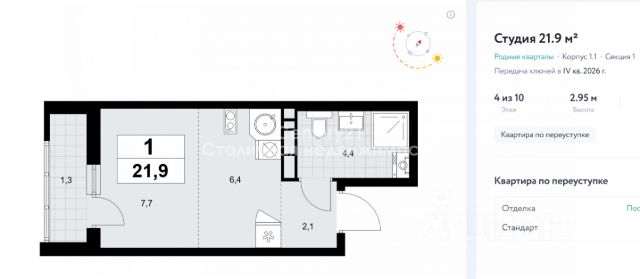 Строим кварталы для жизни с заботой о будущем. Предлагается студия комфорт-класса площадью 26,46 кв.м в корпусе 9 на 4-м этаже, в жилом комплексе "Квартал Западный". Застройщик сдает квартиры с отделкой в нескольких вариантах: предчистовая, готовая, улучшенная или вариант без нее. Последний подойдет тем, кто хочет создать свой уникальный интерьер и ничем себя не ограничивать. А если не хочется тратить время на ремонт, можно выбрать опцию — с отделкой. Перед тем как отдать ключи, застройщик установит натяжные потолки, поклеит обои под покраску, положит ламинат светлых тонов, а в санузлах — керамическую плитку и керамогранит. Приобрести квартиру возможно по специальным акциям от застройщика, с текущими условиями акций можно ознакомиться в блоке "Акций". Цена динамическая и может отличаться, уточняйте актуальность у застройщика. Жилой комплекс в окружении лесопарков и рядом с рекой. До станции МЦД-4 "Санино" можно дойти пешком за 7 минут, а на территории проекта появится транспортно-пересадочный узел с торговым центром. Для жителей построят школу, 2 детсада, в одном из которых будут развивающие кабинеты-трансформеры. Дворы — тихое зеленое пространство без машин. В проекте появится собственный ландшафтный парк с благоустроенной набережной и центральная площадь, на которой будут проводиться различные мероприятия. Высота домов — от 5 до 15 этажей. Фасады выполняют в естественных оттенках, в соответствии с дизайн-кодом "Полевой луг". У каждой секции — свое цветовое решение. Белый цвет верхних этажей добавляет застройке легкости. Фасады облицованы клинкерным глазурованным кирпичом, который используют в проектах бизнес-класса.