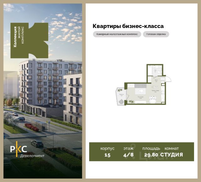 Продается уютная студия на 4 этаже от застройщика. Общая площадь 28,4 кв.м. На выбор представлены 3 вида дизайнерской отделки с использованием качественных материалов. Высота потолков 3 м. ЖК "Коллекция" расположен на северо-западе от Москвы, в поселке Нахабино, всего 13 км от МКАД. Прекрасная экология и живописная природа, отсутствие промышленных зон и вредных предприятий. В проекте планируется строительство 5 корпусов средней этажностью (4-8 этажей) с террасами на угловых секциях и торцевых частях зданий, строительство собственной инфраструктуры: три детских сада, школа, поликлиника, физкультурно-оздоровительный комплекс. Жителям будут доступны машино-места в подземном паркинге, кладовые помещения. Удобная транспортная доступность позволит Вам доехать на автомобиле за 26 минут до метро "Митино", 30 минут до метро "Пятницкое шоссе", дойти до станции МЦД-2 Нахабино за 29 минут. В ближайшей перспективе - расширение местной дорожной сети и запуск новых маршрутов до ж/д станций и станций метро. Благоустроенная территория двора, позволит Вам не покидать сам жилой комплекс. Масштабное озеленение и множество площадок отдыха для взрослых и детей. Детские площадки выполнены в природных материалах, игровые комплексы с бизибордами, развивающие игровые установки для игр с песком. Спортивная инфраструктура: столы для настольного тенниса, тренажеры, гимнастический комплекс. Особую прелесть комплексу придает близость зеленых массивов. В пешей доступности находятся парк Дружба, загородный клуб "Moscow Country Club", парк имени Карбышева. Это располагает к приятным прогулкам и спокойному отдыху жителей комплекса.