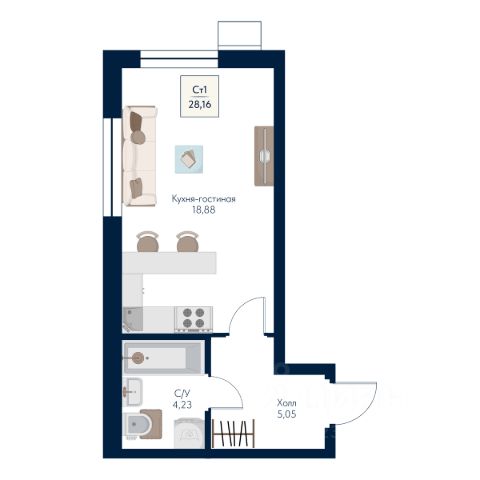 Риелторам не звонить. Собственник. Студия с выделенной зоной спальни. один взрослый собственник. Без обременений. Без маткапитала и ипотеки. Всё в квартире остается.