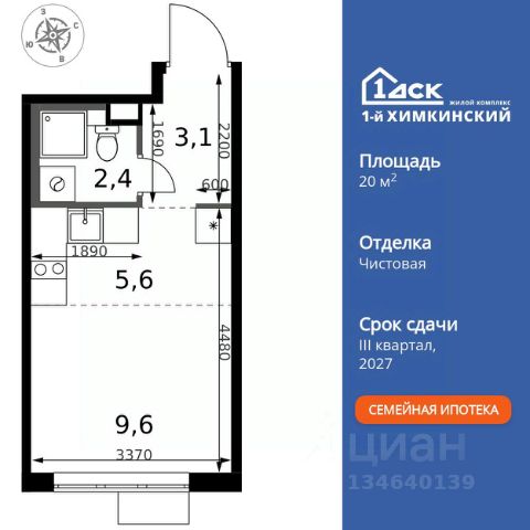 БЕЗ ПЕРВОНАЧАЛЬНОГО ВЗНОСА! • ИПОТЕКА 10% ДЛЯ ВСЕХ БЕЗ НАЦЕНОК • ДОСТУПНО ПО СЕМЕЙНОЙ ИПОТЕКЕ Прямая продажа от застройщика! Жилой Комплекс класса Комфорт. Продаётся квартира-студия номер 279 общей площадью 19.5 кв.м. на 4-м этаже 6 этажного здания. Отделка Whitebox. Цена с учётом скидки. Особенности квартиры: - Линейная планировка - максимальная функциональность и удобство. - Ниша под шкаф - компактное и удобное место для вещей. Квартира с предчистовой отделкой (White box). Вам не придется заниматься черновыми и трудоёмкими работы, а чистовую отделку и дизайн - сделайте на свой вкус. Информация о комплексе: Квартал класса комфорт плюс, где современное городское пространство граничит с удивительной природой вокруг. 1-й Химкинский расположен на территории в 102 га и органично вписан в природное окружение Химкинского леса и канала им. Москвы. В проекте предусмотрена богатая коммерческая инфраструктура с собственным торговым центром, общеобразовательные учреждения и социальные объекты. Изюминкой жилого комплекса будут спортивно-оздоровительный комплекс с термами и SPA и семейный парк развлечений. Транспортная доступность: ЖК "1-й Химкинский" дает возможность выбрать любой способ передвижения как до города, так и до самых разных объектов, которые могут представлять интерес для его жителей. Не важно, какой способ передвижения вы предпочитаете, успевать всегда и везде можно вне зависимости от выбора транспорта. - 8 мин. пешком (800 м) до остановки "Золотая Арка" -10 мин пешком (1 км) до остановки "Поворот на Ивакино" Внутренняя инфраструктура: - Безопасность: закрытые дворы без машин, безбарьерная среда и сквозные подъезды, камеры на детских площадках с возможностью трансляции на смартфоне - Идеальный отдых в кругу семьи: семейный парк развлечений на территории, торговый центр (2-х этажный) общей площадью более 8 тыс. кв. м с фудкортом - Образование: 3 детских сада и современная муниципальная школа на 2450 мест - Спортивная среда: закольцованный веломаршрут с навигацией, спортивный комплекс с термами, закрытый тренажерный зал и зоны ворк-аута - Социальные объекты: поликлиника со станцией скорой помощи, пожарное депо - Подземный паркинг и кладовые помещения на -1 этаже, станция техобслуживания и автомойка на территории