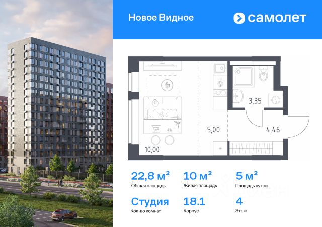 Продажа квартир-студий на 4 этаже рядом с метро Красногвардейская