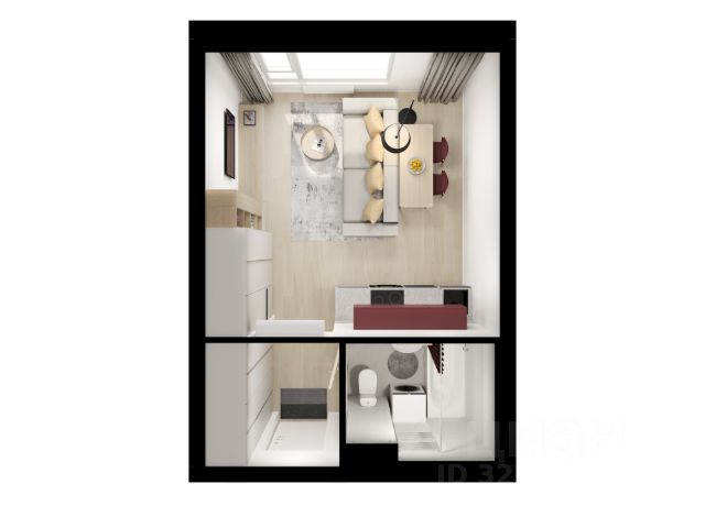 Общая площадь: 32.00 м.кв., Жилая площадь: 19.00 м.кв., Площадь кухни: 8.00 м.кв.