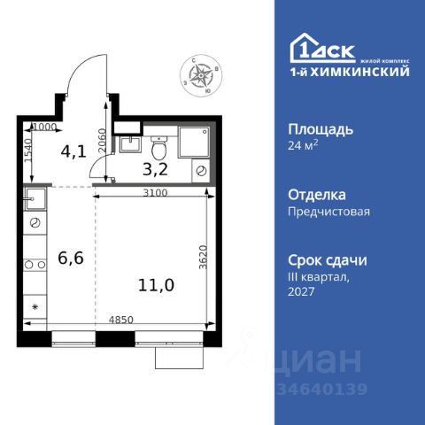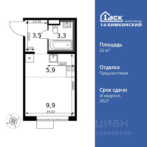 Прямая продажа от застройщика! Жилой Комплекс класса Комфорт. Продаётся квартира-студия номер 330 общей площадью 26.8 кв.м. на 4-м этаже 8 этажного здания. Отделка Whitebox. Особенности квартиры: - Линейная планировка - максимальная функциональность и удобство. - Увеличенное количество окон - дополнительное освещение и свежий воздух. - Линейная кухня - функциональность и практичность в одном решении. - Ниша под шкаф - компактное и удобное место для вещей. Квартира с предчистовой отделкой (White box). Вам не придется заниматься черновыми и трудоёмкими работы, а чистовую отделку и дизайн - сделайте на свой вкус. Информация о комплексе: Квартал класса комфорт плюс, где современное городское пространство граничит с удивительной природой вокруг. 1-й Химкинский расположен на территории в 102 га и органично вписан в природное окружение Химкинского леса и канала им. Москвы. В проекте предусмотрена богатая коммерческая инфраструктура с собственным торговым центром, общеобразовательные учреждения и социальные объекты. Изюминкой жилого комплекса будут спортивно-оздоровительный комплекс с термами и SPA и семейный парк развлечений. Транспортная доступность: ЖК "1-й Химкинский" дает возможность выбрать любой способ передвижения как до города, так и до самых разных объектов, которые могут представлять интерес для его жителей. Не важно, какой способ передвижения вы предпочитаете, успевать всегда и везде можно вне зависимости от выбора транспорта. - 8 мин. пешком (800 м) до остановки "Золотая Арка" -10 мин пешком (1 км) до остановки "Поворот на Ивакино" Внутренняя инфраструктура: - Безопасность: закрытые дворы без машин, безбарьерная среда и сквозные подъезды, камеры на детских площадках с возможностью трансляции на смартфоне - Идеальный отдых в кругу семьи: семейный парк развлечений на территории, торговый центр (2-х этажный) общей площадью более 8 тыс. кв. м с фудкортом - Образование: 3 детских сада и современная муниципальная школа на 2450 мест - Спортивная среда: закольцованный веломаршрут с навигацией, спортивный комплекс с термами, закрытый тренажерный зал и зоны ворк-аута - Социальные объекты: поликлиника со станцией скорой помощи, пожарное депо - Подземный паркинг и кладовые помещения на -1 этаже, станция техобслуживания и автомойка на территории