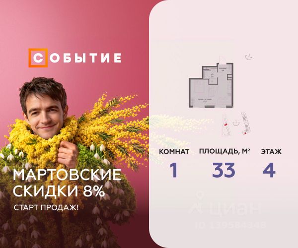 Успейте стать частью уникального проекта премиум-класса на западе Москвы! В продаже квартиры: 1-комнатные от 28,1 м²; 2-комнатные от 61,2 м²; 3-комнатные от 86,6 м²; 4-комнатные от 110,7 м². Первый взнос от 30%! Рассрочка на 2 года без переплат! Крылатское 33 это премиальный жилой комплекс от специализированного застройщика ООО "Сияние". Самый высокий небоскрёб в районе, достигающий отметки в 150 метров и малоэтажный клубный формат высотой от 42 метров на приватной территории площадью 1,4 га. Великолепные виды на излучину Москва-реки, Живописный мост и урбанистический облик города. Эксклюзивные форматы квартир с панорамным остеклением и патио-террасами. Двухуровневый паркинг на 271м/м, премиальные входные группы, ресторан высокой кухни, детский сад и эко-маркет на территории комплекса. Эксклюзивные преимущества: доступ к wellness-центру, коворкингу и клубной гостиной только для резидентов. Над проектом работали именитые российские архитектурные бюро: архитектор проекта бюро "Остоженка", планировочные решения от бюро Александры Федоровой. Расположение Пешком: 5-7 минут - до парка Звезд, Крылатского парка и набережной Москвы-реки; 15 минут - до метро Крылатское Арбатско-Покровской линии; 15 минут - до пристани Крылатская. На автомобиле: 10 минут - до Третьего транспортного кольца; 15 минут - до Садового кольца и Москва- Сити; 20-30 минут - до Аэропорта Внуково; 30-40 минут - до Аэропорта Шереметьево. В 300 метрах от комплекса - удобная транспортная развязка с проспектом Маршала Жукова, обеспечивающая легкий доступ к ключевым магистралям. Благоустройство: Просторная общественная гостиная; Коворкинг с кофе-баром, комфортные переговорные зоны с быстрым wi-fi, зарядными устройствами и библиотекой; Пространство friends lab для организации клубных мероприятий; Wellness-центр с фитнес-залом и массажными кабинетами; Ресторан высокой кухни; Частный детский сад; Детское кафе; Современный детский playhub; Спортивные площадки; Гипоаллергенный сад, безопасные водные пространства, декоративные пруды и сухие фонтаны; Высокоскоростные бесшумные лифты; Разделение зон для резидентов квартала и сервисного обслуживания. Окружение: - парки: Крылатские холмы, природно-исторический парк Москворецкий, Серебряный Бор; - учебные заведения: 5 образовательных комплексов, в которые входят 15 детских садов и 12 школьных корпусов. В удобной транспортной доступности гимназия им. Е. М. Примакова и международный лицей The International School of Moscow; - уникальные спортивные сооружения: гребной канал "Крылатское", легендарный велотрек "Крылатское", "Лата Трэк" для горнолыжников и сноубордистов, ледовый дворец "Крылатское"; - единственный в Москве парк развлечений под открытым небом, включающий более 70 вариантов досуга для любого возраста и времени года. Срок сдачи проекта: 2 квартал 2027 года. Финансирование и эскроу-счет обеспечены банком МКБ.