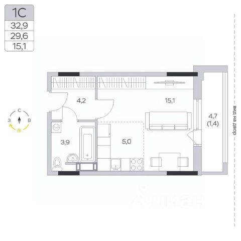 Продаётся студия 392, площадью 29,35 м², на 5 этаже в ЖК "Императорские Мытищи" корпус 1.1. Стоимость — от 6144424 руб. Квартира без отделки, планировка односторонняя, окна во двор.