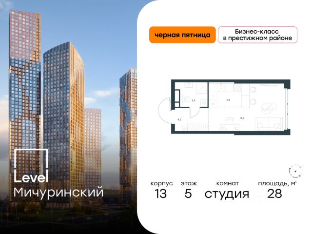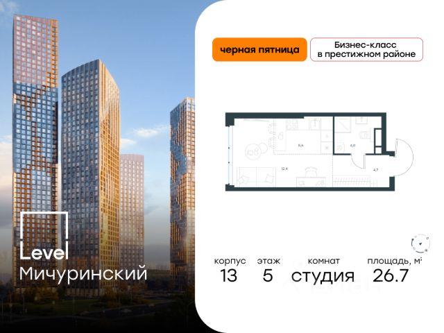 Продажа квартир-студий на 5 этаже рядом с метро Аминьевская