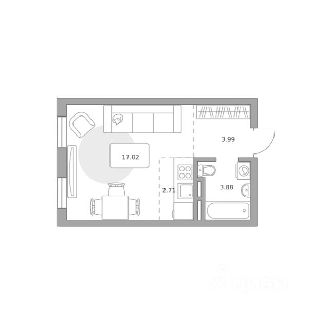 Квартира-студия с компактной кухней-нишей Квартира-студия с компактной кухней-нишей в жилом комплексе комфорт-класса "Никольский квартал Отрада". Планировка выполнена по современным стандартам и отличается повышенным комфортом. Квартал расположен в удачной локации, которая сочетает благоприятную экологическую обстановку с прекрасной транспортной доступностью. Проектом предусмотрены 14 корпусов высотой 6-9 этажей, а также муниципальная школа, один муниципальный и один частный детский сад, два наземных многоуровневых паркинга с кладовыми помещениями. Надежный застройщик ГК "Отрада" с высочайшим рейтингом 5 звезд от портала ЕРЗ. Все корпуса во всех ЖК сданы раньше срока!