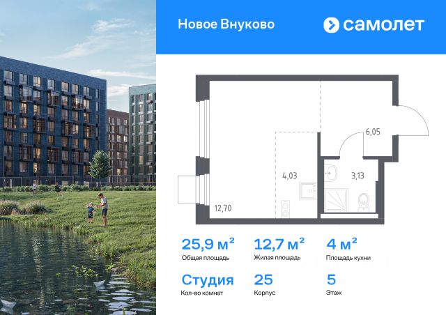 квартира-студия в ЖК комфорт-класса "Времена года" на 5 этаже в 9 этажном корпусе 12. Общая площадь: 50.33 кв.м., жилая: 19.43 кв.м. Высота потолков 2.76 м. "Времена года" современный жилой комплекс комфорт-класса, расположенный в тихом и зеленом подмосковном городе Апрелевка, в 1 минуте пешком от станции МЦД-4 "Победа". 1-я очередь уже заселена, сейчас ведется строительство 2-го этапа 2-й очереди, которая будет сдана к 3 кварталу 2025 года. Комплексная застройка территории общей площадью 12,9 Га включает в себя малоэтажные жилые корпуса, собственные детский сад и школу. Первые этажи домов первой очереди и второго этапа второй очереди отведены под социальную инфраструктуру. Корпуса малоэтажные не более 9 этажей. Различные варианты квартир эргономичных планировок от студий до трехкомнатных, площадью от 29,6 до 93,7 м² доступны покупателям. На территории комплекса будет собственный детский сад и школа, в 15 минутах расположен физкультурно-оздоровительный комплекс ""Мелодия"" с бассейном. Недалеко от ЖК находится лес с прудами для прогулок и занятий спортом. Инфраструктура ""Времена года"" включает в себя не только объекты первой необходимости, такие как продуктовые магазины, аптека, салон красоты, кафе, но и детский клуб ""Кот да Винчи"" для самых маленьких жителей. Для удобства жителей предусмотрено достаточное количество парковочных мест и система безопасности ""Безопасный регион"". Кроме того, жители могут воспользоваться развитой инфраструктурой города Апрелевка, всего в 4 минутах езды на электричке либо 10 минутах на автомобиле. Квартиры свободной планировки будут сдаваться без отделки, что позволит обустраивать пространство по своему вкусу. В продаже представлены студии, одно-, двух- и трехкомнатные квартиры различной площади. Также доступны ипотечные программы от различных банков." Дорога от комплекса до Москвы займёт порядка 38 мин (станция БКЛ "Аминьевская"), а до Белорусского вокзала и Тверской улицы — не более 58 минут. Удобный выезд на Киевское и Боровское шоссе, 25 минут на авто до МКАД.
