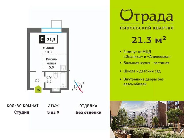 Продажа квартир-студий на 5 этаже рядом с метро Митино