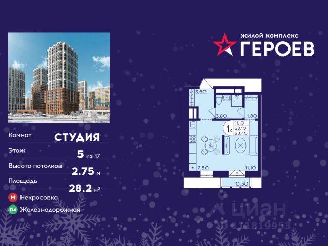 Продаётся студия 25.20 кв. м. в жилом комплексе "Героев" в Балашихе, Железнодорожный. Квартира расположена на 5 этаже 410 корпуса. В наличии квартиры с отделкой. Всего 40 минут до центра Москвы. При покупке квартиры в сданном доме ключи выдаются сразу! Жилой квартал "Героев" - это уютный проект для семей с детьми. В квартале созданы все условия для досуга всех возрастов: игровые и спортивные площадки, места для отдыха и прогулочные зоны. За 15 минут можно дойти от дома до Ольгинского лесопарка, популярного места для отдыха на свежем воздухе. На территории жилого комплекса уже открыт детский сад на 250 мест и началось строительство еще одного - для 220 малышей, а также школы для 1320 учеников. Рядом работают магазины, кафе, супермаркеты, пункты выдачи. Преимущества: • В уютных светлых квартирах с просторными кухнями-гостиными удобно встречать гостей и проводить время наедине друг с другом. • Благодаря увеличенному остеклению в комнатах много света. • Квартиры продаются с отделкой, можно заселяться сразу после получения ключей.