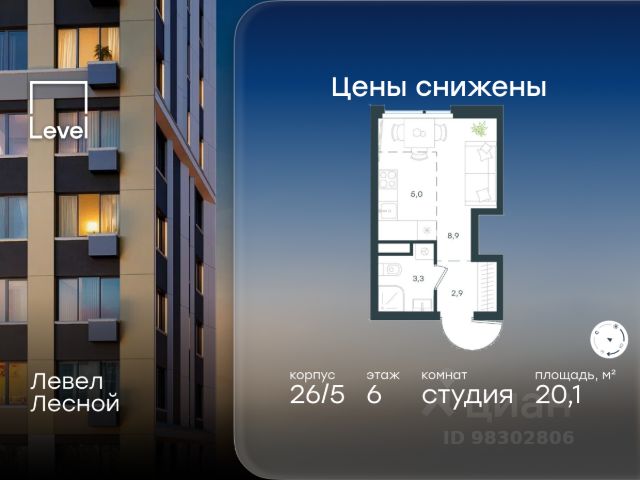 Цена указана с учётом скидки при 100%-й оплате, несубсидированной ипотеке, рассрочке (кроме программы "Рассрочка 0%"). В районе, утопающем в густой зелени лесов, многочисленных парков и скверов, продаётся студия площадью 21.20 кв.м с предчистовой отделкой. Квартира расположена на 6 этаже в жилом комплексе комфорт-класса Левел Лесной (компания Level Group/Левел групп). Отличная транспортная доступность: - 25 мин. пешком до станции метро "Пятницкое шоссе"; - 28 мин. на автобусе до станции метро и МЦД-2 "Волоколамская"; - 11 мин. на авто до МКАД; - 25 мин. на авто до ТТК. Продуманный архитектурный проект: - Концепция проекта Левел Лесной от бюро СПИЧ; - Высотность комплекса до 15 этажей с уникальными видами на лесные массивы и город; - Высота потолков до 3 м; - Современные окна высотой до 1,6 м, в части квартир предусмотрены окна в пол. Высота подоконников 0,6 м; Расположение: Жилой комплекс Левел Лесной строится в зелёной зоне ближайшего Подмосковья, г.о. Красногорск в посёлке Отрадное. Шаговая и автомобильная доступность до метро и больших транспортных артерий города. За 25 минут вы дойдёте до станции метро "Пятницкое шоссе", а за 20 минут на машине сможете доехать до станции метро "Тушинская". Район окружен роскошной зеленью лесов и парковых зон, занимающих территорию свыше 1 000 гектаров. Помимо благоприятной экологии, здесь множество возможностей для активного отдыха и поддержания физической формы. Облагороженная территории с полностью развитой инфраструктурой. На территории проекта находится детский сад и школа "Светлые Горы", которая входит в список лучших частных школ от Forbes Education (по данным на 2023г.). Кроме того, в пешей доступности расположено ещё 8 детских садов, а также запланировано открытие современной муниципальной школы. В непосредственной близости находятся сетевые супермаркеты и локальные магазины, аптеки, клиники, почта, библиотека, салоны красоты, рестораны, спортивные и творческие секции, развивающие детские центры. В 12 минутах пешком расположен торговый парк "Отрада" с продуктовым и строительным гипермаркетами, магазинами, кинотеатром и развлечениями для детей. Внутренняя инфраструктура: Мы знаем, как важно, чтобы магазины и сервисы были всегда рядом. В сданных корпусах жилого комплекса Левел Лесной уже расположена полностью готовая развитая инфраструктура. На первых этажах корпуса 27 предусмотрено ещё 14 коммерческих помещений. Благоустройство: Продуманное пространство и аура приватного европейского городка рождают чувство лёгкости и расслабления у каждого, кто попадает на территорию проекта. Концепцию общественных площадок разработали в партнёрстве два архитектурных бюро: "Хайлайт Архитектура" (Highlight Architecture) и "Скейп" (Scape). В безопасных дворах без машин каждый обязательно найдёт себе место для вдохновения, отдыха и спорта.