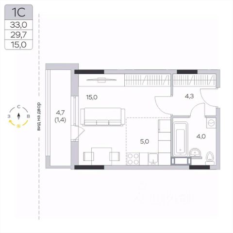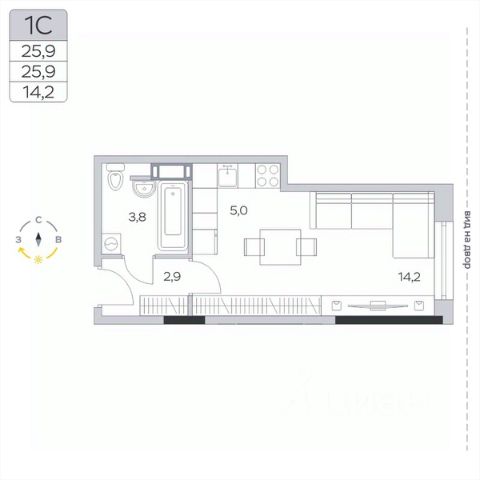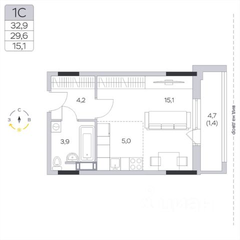 Продаётся студия 405, площадью 29,35 м², на 6 этаже в ЖК "Императорские Мытищи" корпус 1.1. Стоимость — от 6374840 руб. Квартира без отделки, планировка односторонняя, окна во двор.