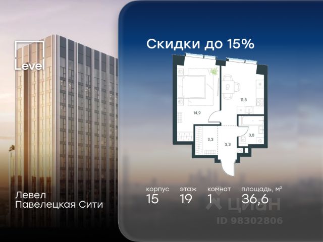 Цена указана с учётом скидки при 100%-й оплате, несубсидированной ипотеке, рассрочке (кроме программы "Рассрочка 0%"). В Даниловском районе столицы (ЮАО) продаётся студия площадью 27.00 кв.м без отделки. Квартира расположена на 6 этаже 27-этажного корпуса 14 в жилом комплексе бизнес-класса Левел Павелецкая Сити. Высота потолков 3.00м. Престижная локация Жилой комплекс бизнес-класса Левел Павелецкая Сити расположен в престижном Даниловском районе Москвы - историческом центре города в окружении парков, Москвы-реки и новейшей инфраструктуры. В 20 минутах пешком есть 3 станции метро, а в 5 минутах езды на авто - ТТК и Садовое кольцо. - 15 мин. пешком до метро "Павелецкая"; - 20 мин. пешком до станций "Тульская" и "Серпуховская"; - 8 мин. на авто до Кремля; - 10 мин. на авто до парка Горького и парка "Зарядье"; - 20 мин. на авто до башен "Москва-Сити". Авторская архитектура Авторская архитектура Авторская архитектурная концепция разработана бюро СПИЧ. Облик корпусов этапов 1 и 2 отсылает к стилистике архитектуры классического Нью-Йорка и золотой эпохи Голливуда. Корпуса этапа 4 вдохновлены эстетикой ар-деко. Умное линейное расположение корпусов гарантирует потрясающие виды на исторический центр и Москву-реку из большинства квартир. Дизайнерские лобби Изысканные интерьеры лобби жилого комплекса отсылают к классическим фильмам золотой эпохи Голливуда. Классика в жилом комплексе Левел Павелецкая Сити - не имитация, а современное осмысление лучшего в этом стиле. В каждом вестибюле оборудованы стойки ресепшен, комфортные зоны ожидания, гостевые санузлы, мойки для лап животных, колясочные. В корпусах по 3-4 лифта с прямым доступом в паркинг. Площадь лобби - от 47,9 до 114,9 кв. м, высота потолков - до 5,46 м. Благоустройство и инфраструктура Для создания благоустройства было приглашено 2 ведущих бюро - ADM и GAFA. Разноуровневое пространство вмещает в себя игровые площадки для детей всех возрастов, тропы здоровья для пеших прогулок, крытые аллеи с качелями, места для работы на свежем воздухе, многофункциональные спортивные площадки - зоны уличных тренировок, столы для пинг-понга, зоны командных игр. Общая площадь закрытого двора - 4,63 га. Комфорт - это когда рядом всё, что нужно для жизни. В жилом комплексе Левел Павелецкая Сити размещены 85 коммерческих помещений, где откроются супермаркеты, кафе, аптеки и многое другое. В составе проекта также предусмотрены собственный фитнес-клуб, развивающий центр Летово Кидс. Технологии и безопасность - Вайфай в лобби и на придомовой территории; - Автоматизированная система контроля и учета ресурсов; - Круглосуточное видеонаблюдение и охрана; - Круглосуточная связь с охраной через приложение, телефон или кол-центр; - Контроль доступа по биометрической системе распознавания лица; - Усиленный сотовый сигнал в лифтах и паркинге; - Распознавание номеров автомобилей при въезде/выезде в/из паркинга.