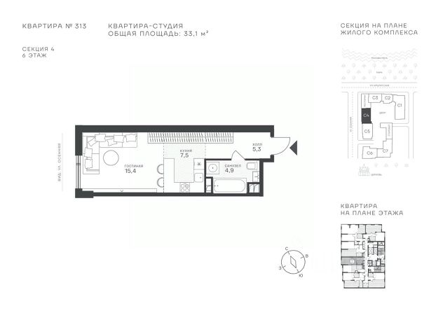 Продается студия площадью 30.3 кв.м. на 6-м этаже в ЖК "Клубный квартал Крылатская 33". Прямая продажа от застройщика! Крылатская 33 - проект премиум-класса на западе Москвы от специализированного застройщика "Сияние". Комплекс расположен всего в 15 минутах от Садового кольца и Москва-Сити, а рядом есть большое количество зелёных зон: Крылатский и Москворецкий парки, Серебряный бор, Крылатские холмы - это создает идеальный баланс между приватностью и динамичным ритмом мегаполиса. Квартал сочетает высотные башни до 150 метров и камерные малоэтажные корпуса. Витражное остекление "в пол" наполняет квартиры светом и открывает захватывающие панорамы на Москву-реку и знаковые виды столицы. Здесь каждый найдет то, что подходит именно ему - от уютных студий до роскошных пентхаусов и квартир с собственными террасами. Внутренняя среда жилого комплекса продумана до мельчайших деталей, чтобы резиденты могли продуктивно работать и качественно отдыхать, не покидая территорию: • фитнес-центр, включающий в себя СПА-зону; • коворкинг с кофейней и быстрым интернетом; • общественная гостиная для организации клубных мероприятий; • ресторан с панорамным остеклением; • благоустроенный сад с зоной отдыха; • инновационная игровая площадка для детей всех возрастов; • консьерж-сервис 24/7, современные системы видеонаблюдения и пожаротушения; • двухуровневый паркинг и многое другое. Район Крылатское - точка притяжения для тех, кто выбирает активный образ жизни. В непосредственной близости расположены Гребной канал, Олимпийский велотрек, горнолыжный комплекс "Лата Трэк", гольф-клуб и парковые зоны. В проекте действуют привлекательные условия покупки: - выгода до 10% при 100% оплате (действует на ограниченный пул квартир, подробности уточняйте в отделе продаж). - рассрочка от застройщика 0% с первоначальным взносом от 20% на срок до 30.06.2027.