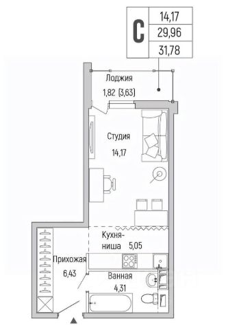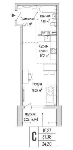 Квартира-студия с компактной кухней-нишей Квартира-студия с компактной кухней-нишей в жилом комплексе комфорт-класса "Никольский квартал Отрада". Планировка выполнена по современным стандартам и отличается повышенным комфортом. Квартал расположен в удачной локации, которая сочетает благоприятную экологическую обстановку с прекрасной транспортной доступностью. Проектом предусмотрены 14 корпусов высотой 6-9 этажей, а также муниципальная школа, один муниципальный и один частный детский сад, два наземных многоуровневых паркинга с кладовыми помещениями. Надежный застройщик ГК "Отрада" с высочайшим рейтингом 5 звезд от портала ЕРЗ. Все корпуса во всех ЖК сданы раньше срока!