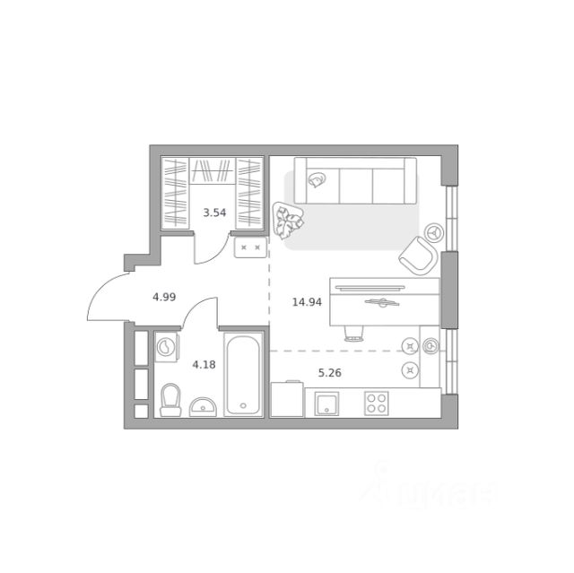 1-комн. кв., 19 кв.м -------------------- Продажа квартира, Волочаевская улица, дом 18, Этаж 11,кв. 127 --------------------