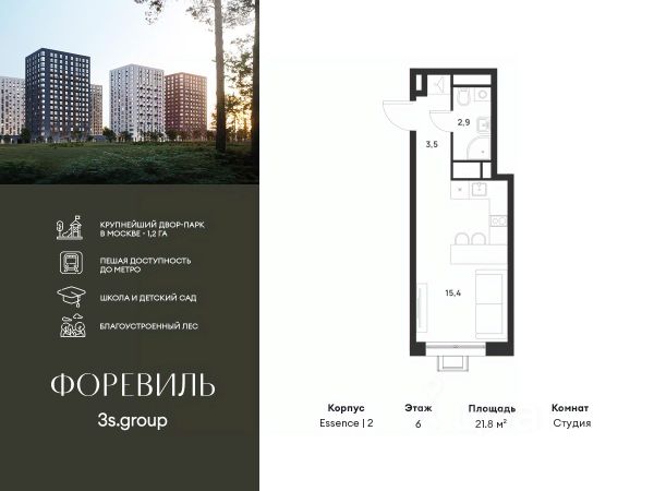 Продаётся квартира-студия площадью 27 кв.м на 6 этаже 16 этажного дома (Корпус 2.6/1.5, Секция 5) проекта ПИК Бунинская набережная. Светлый просторный подъезд на уровне земли, функциональная планировка, большие окна, c отделкой. Удобное расположение: 18 минут пешком от м. "Потапово" и 12 минут на автомобиле до станции "Бунинская аллея". 12 минут на автомобиле до трассы Солнцево — Бутово — Варшавское шоссе. 20 минут на автомобиле до МКАД и Калужского шоссе. 1520 минут езды до живописных парков: "Бутовский лесопарк", заказник "Южное Бутово". Особенности проекта Камерный квартал в Новой Москве, на берегу Ивановского пруда. Одна из ключевых особенностей проекта — квартиры с панорамным видом на воду. Архитекторы вдохновились локацией проекта: природные оттенки и активная пластика корпусов напоминают рельефные выступы на берегу, а окна отражают водную гладь, визуально объединяя дома с природой. Преимущества проекта Светлые и просторные лобби с зонами ожидания. Подземный паркинг. Набережная и пешеходная аллея для прогулок. Парк на склоне с игровой зоной. Готовая инфраструктура района: 3 школы, 6 детских садов, взрослая и детская поликлиники. Артикул 969239 (Застройщик ООО СЗ "Стройком")