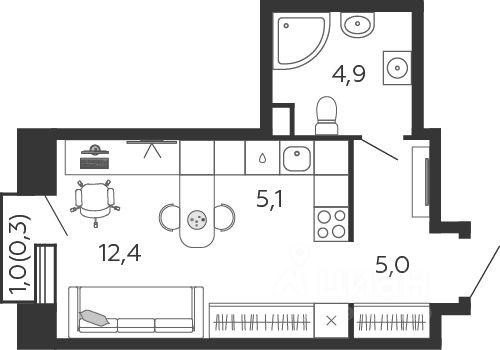 Продается квартира-студия общей площадью 26.1 кв. метров на 6 этаже жилого комплекса ВЕЙВ. Комплекс располагается на юге Москвы в районе Москворечье-Сабурово. В пешей доступности расположены станция МЦД "Москворечье" и станция метро "Борисово". Для автомобилистов есть удобное сообщение с Каширским шоссе. Вторая очередь ВЕЙВ представляет собой архитектурный ансамбль из семи корпусов переменной этажности, объединенных общим стилобатом, в котором расположатся различные объекты инфраструктуры. Со стороны улицы Борисовские Пруды ВЕЙВ предстает тремя стометровыми башнями, выполненными футуристичными каскадами из стекла и металла. С противоположной стороны — три невысоких здания с непохожими друг на друга фасадами, придающими комплексу свой характер и уникальность. Ключевым преимуществом ВЕЙВ является благоустроенная набережная со смотровой площадкой, беговыми и велодорожками, детскими и спортивными. В центре квартала появится зеленый пешеходный бульвар с детскими и спортивными площадками, а также зоной тихого отдыха. Вокруг жилого квартала сосредоточены более 2000 га зеленых пространств: парк "Борисовские пруды", Братеевский каскадный парк, парк 850-летия г. Москвы, музеи-заповедники "Царицыно" и "Коломенское". Особое внимание в ВЕЙВ уделено интерьерам лобби, выполненным в современном стиле с контрастными акцентами. Стильное пространство разделено на несколько зон: ресепшен, зона ожидания с Wi-Fi и мягкими креслами, колясочная и лаконичный лифтовый холл. Для автомобилистов предусмотрен подземный паркинг с видеонаблюдением, зоной с оборудованием для подкачки колес, усилителем сотовой связи и системой распознавания номеров.