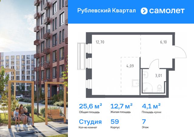 Предлагается квартира студия комфорт-класса 25,6 кв.м в корпусе 59 на 7 этаже, в ЖК "Рублевский Квартал" Квартира с чистовой отделкой. Доступность дополнительных опций уточняйте у застройщика. Приобрести квартиру возможно по специальным акциям от застройщика, с текущими условиями акций можно ознакомиться в блоке "Акций". Цена динамическая и может отличаться, уточняйте актуальность у застройщика. Жилой комплекс "Рублевский Квартал" на западе Москвы окружен Подушкинским и Дубковским лесами. Рядом ж/д станция Усово и МЦД-1 "Одинцово". На территории комплекса — школа, детский сад, поликлиника и торговый центр. Архитектура с переменной этажностью от 3 до 12 этажей гармонично вписывается в природу. Закрытый двор-парк, кленовые аллеи и игровые зоны создают уют. Квартиры с отделкой и живописными видами на лес.