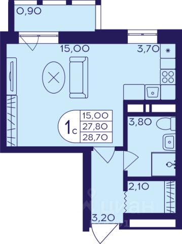 • ✅ Минимальная площадь: 19,4 м²