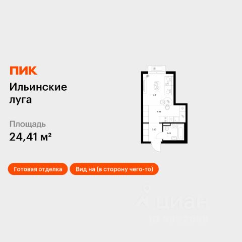 Продаётся квартира-студия площадью 24,41 кв.м на 7 этаже 9 этажного дома (Корпус 4.1, Секция 2) проекта ПИК Ильинские луга. Светлый просторный подъезд на уровне земли, функциональная планировка, большие окна, c отделкой. Жилой район "Ильинские луга" находится в 10 километрах от МКАД по Новорижскому шоссе, в 20 минутах на автомобиле от станций метро "Волоколамская", "Тушинская" и "Строгино". В будущем ближе к проекту, в 9 минутах пути на машине, откроется станция "Ильинская" Рублёво-Архангельской линии, которая будет соединять Арбатско-Покровскую линию и Большую кольцевую линию. Сейчас в квартале начались продажи в корпусах 3.2, 3.3, 3.4, 3.5 и 3.6. "Ильинские луга" — масштабный проект, в который входит девять детских садов, четыре школы и поликлиника. Он строится в престижном и экологичном районе среди лесов и памятников природы. За 5 минут от жилого квартала можно доехать до Рублёво-Успенского шоссе, а за 30 минут — до центра Москвы. До крупного торгового центра "РИГАМОЛЛ" всего 5 минут на автомобиле, а до ТЦ "Твой дом" и гипермаркета "Глобус" — 10 минут. В "Ильинских лугах" строятся только девятиэтажные дома — такая архитектура соответствует спокойной жизни за городом. В каждом дворе-парке есть места для отдыха, детские и спортивные площадки. А ещё, здесь уже открыт большой PlayHub "Гравити" — современное игровое пространство с космической тематикой, холмами, зонами для игр и отдыха жителей любого возраста. На первых этажах уже работают магазины, кафе и пекарни. Места для отдыха от "Ильинских лугов" тоже недалеко: 10 минут на машине — и вы в музее-усадьбе "Архангельское". Также рядом находится Лохин остров — памятник природы, где водятся речные черепахи, есть места для кемпинга и возможность сплавиться по реке. Артикул 1015872 (Застройщик ООО "СЗ "ГРАДОЛИМП")