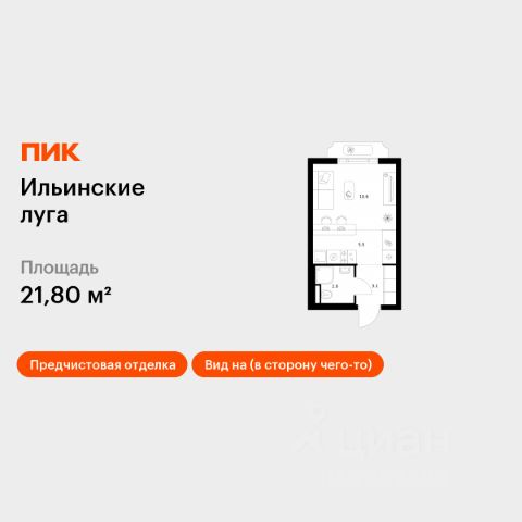 Продаётся квартира-студия площадью 21,76 кв.м на 7 этаже 9 этажного дома (Корпус 4.2, Секция 1) проекта ПИК Ильинские луга. Светлый просторный подъезд на уровне земли, функциональная планировка, большие окна, c отделкой. Жилой район "Ильинские луга" находится в 10 километрах от МКАД по Новорижскому шоссе, в 20 минутах на автомобиле от станций метро "Волоколамская", "Тушинская" и "Строгино". В будущем ближе к проекту, в 9 минутах пути на машине, откроется станция "Ильинская" Рублёво-Архангельской линии, которая будет соединять Арбатско-Покровскую линию и Большую кольцевую линию. Сейчас в квартале начались продажи в корпусах 3.2, 3.3, 3.4, 3.5 и 3.6. "Ильинские луга" — масштабный проект, в который входит девять детских садов, четыре школы и поликлиника. Он строится в престижном и экологичном районе среди лесов и памятников природы. За 5 минут от жилого квартала можно доехать до Рублёво-Успенского шоссе, а за 30 минут — до центра Москвы. До крупного торгового центра "РИГАМОЛЛ" всего 5 минут на автомобиле, а до ТЦ "Твой дом" и гипермаркета "Глобус" — 10 минут. В "Ильинских лугах" строятся только девятиэтажные дома — такая архитектура соответствует спокойной жизни за городом. В каждом дворе-парке есть места для отдыха, детские и спортивные площадки. А ещё, здесь уже открыт большой PlayHub "Гравити" — современное игровое пространство с космической тематикой, холмами, зонами для игр и отдыха жителей любого возраста. На первых этажах уже работают магазины, кафе и пекарни. Места для отдыха от "Ильинских лугов" тоже недалеко: 10 минут на машине — и вы в музее-усадьбе "Архангельское". Также рядом находится Лохин остров — памятник природы, где водятся речные черепахи, есть места для кемпинга и возможность сплавиться по реке. Артикул 1015360 (Застройщик ООО "СЗ "ГРАДОЛИМП")