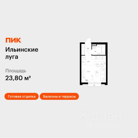 Продаётся квартира-студия площадью 23,8 кв.м на 7 этаже 9 этажного дома (Корпус 3.1, Секция 3) проекта ПИК Ильинские луга. Светлый просторный подъезд на уровне земли, функциональная планировка, большие окна, c отделкой. Жилой район "Ильинские луга" находится в 10 километрах от МКАД по Новорижскому шоссе, в 20 минутах на автомобиле от станций метро "Волоколамская", "Тушинская" и "Строгино". В будущем ближе к проекту, в 9 минутах пути на машине, откроется станция "Ильинская" Рублёво-Архангельской линии, которая будет соединять Арбатско-Покровскую линию и Большую кольцевую линию. Сейчас в квартале начались продажи в корпусах 3.2, 3.3, 3.4, 3.5 и 3.6. "Ильинские луга" — масштабный проект, в который входит девять детских садов, четыре школы и поликлиника. Он строится в престижном и экологичном районе среди лесов и памятников природы. За 5 минут от жилого квартала можно доехать до Рублёво-Успенского шоссе, а за 30 минут — до центра Москвы. До крупного торгового центра "РИГАМОЛЛ" всего 5 минут на автомобиле, а до ТЦ "Твой дом" и гипермаркета "Глобус" — 10 минут. В "Ильинских лугах" строятся только девятиэтажные дома — такая архитектура соответствует спокойной жизни за городом. В каждом дворе-парке есть места для отдыха, детские и спортивные площадки. А ещё, здесь уже открыт большой PlayHub "Гравити" — современное игровое пространство с космической тематикой, холмами, зонами для игр и отдыха жителей любого возраста. На первых этажах уже работают магазины, кафе и пекарни. Места для отдыха от "Ильинских лугов" тоже недалеко: 10 минут на машине — и вы в музее-усадьбе "Архангельское". Также рядом находится Лохин остров — памятник природы, где водятся речные черепахи, есть места для кемпинга и возможность сплавиться по реке. Артикул 1001748 (Застройщик ООО "СЗ "ГРАДОЛИМП")