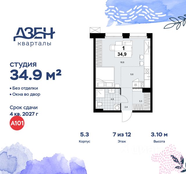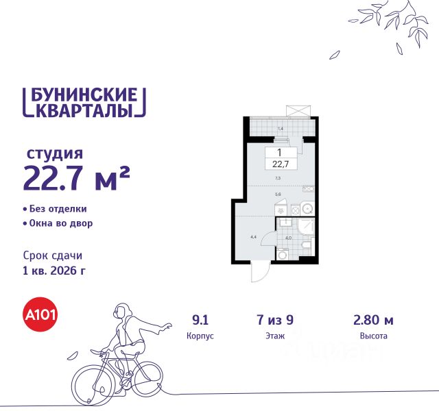 Продаётся квартира-студия площадью 20,2 кв.м на 7 этаже 16 этажного дома (Корпус 2.6/1.2, Секция 2) проекта ПИК Бунинская набережная. Светлый просторный подъезд на уровне земли, функциональная планировка, большие окна, предчистовая отделка. Удобное расположение: 18 минут пешком от м. "Потапово" и 12 минут на автомобиле до станции "Бунинская аллея". 12 минут на автомобиле до трассы Солнцево — Бутово — Варшавское шоссе. 20 минут на автомобиле до МКАД и Калужского шоссе. 1520 минут езды до живописных парков: "Бутовский лесопарк", заказник "Южное Бутово". Особенности проекта Камерный квартал в Новой Москве, на берегу Ивановского пруда. Одна из ключевых особенностей проекта — квартиры с панорамным видом на воду. Архитекторы вдохновились локацией проекта: природные оттенки и активная пластика корпусов напоминают рельефные выступы на берегу, а окна отражают водную гладь, визуально объединяя дома с природой. Преимущества проекта Светлые и просторные лобби с зонами ожидания. Подземный паркинг. Набережная и пешеходная аллея для прогулок. Парк на склоне с игровой зоной. Готовая инфраструктура района: 3 школы, 6 детских садов, взрослая и детская поликлиники. Артикул 968538 (Застройщик ООО СЗ "Стройком")