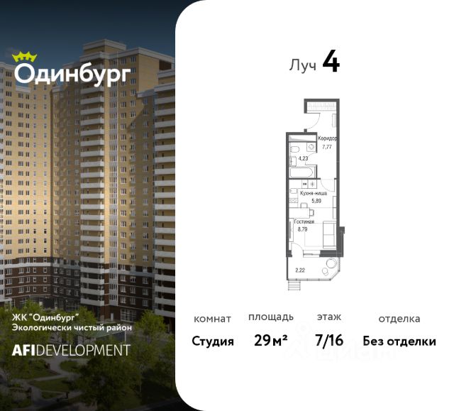 Продается квартира-студия в городе-парке "Переделкино Ближнее". Общая площадь квартиры - 24,8 кв. м, этаж 7 из 17. Срок сдачи - 3 квартал 2026 года. Тип дома - монолитный. Город-парк "Переделкино Ближнее" расположен в 8 км от МКАД по Боровскому шоссе. ТРАНСПОРТНАЯ ДОСТУПНОСТЬ: - 10 минут пешком до МЦД-4 "Мичуринец" - 15 минут пешком до станции метро "Рассказовка" Солнцевской линии - 10 минут на машине до станции метро "Филатов Луг" Сокольнической линии - 30 минут до центра Москвы - Прямой выезд на дорогу Солнцево-Бутово-Варшавское шоссе, минуя жилую застройку всего ЖК БЛАГОУСТРОЙСТВО: Новая фаза строительства уникальна своим расположением - в шаговой доступности парк на Лукинской улицы, река Алёшинка. На территории 18 фазы строительства будут построены 2 монолитных жилых корпуса повышенного комфорта разной этажности 7, 17 этажей. А также многоуровневый паркинг на 300 м/мест. Вход в жилую часть корпусов каждой секции осуществляется с двух сторон - с наружного контура жилого дома и со стороны дворового пространства, предусмотрен безбарьерный доступ. ВНУТРЕННЯЯ ИНФРАСТРУКТУРА: В рамках данной фазы, для жителей предусмотрено создание пространства, свободного от машин - благоустроенные огороженные дворы с современными детскими и спортивными площадками, разделенными на зоны по возрастам. На территории проекта есть все необходимые объекты социальной и бытовой инфраструктуры: детские сады, школы, магазины, паркинги, аптеки, поликлиники, пожарная часть и др. АВТОРСКИЙ ДИЗАЙН: Современный монолитный дом переменной этажности 7 и 17 этажей. На фасаде предусмотрены корзины для установки кондиционеров. Входные группы домов выполнены по авторскому дизайну. Колясочные располагаются при входе, велопарковка на -1 этаже.