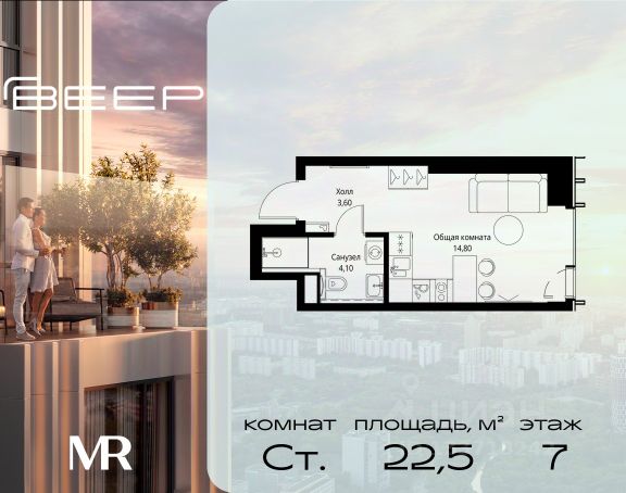 Прямая продажа от застройщика. Продаётся студия общей площадью 20.50 м² с предчистовой отделкой в ЖК Веер на 7-м этаже 46 этажного дома. Жилой комплекс бизнес-класса Веер от компании MR — это футуристичный мультиквартал, расположенный в престижной локации на западе Москвы. Благодаря переменной высоте башен — двух 22-этажных, 46-этажной и двух 59-этажных — возникает динамичность в силуэте комплекса, а его яркий образ вносит разноплановость в архитектурный пейзаж района. Расположение и транспортная доступность: • Веер удобно расположен в непосредственной близости от Кутузовского проспекта, обеспечивая быстрый доступ к центральным районам Москвы • Комплекс находится непосредственно напротив самого большого природного заказника в Москве - парка "Долина реки Сетунь", а за семь минут можно доехать до памятника садово-паркового искусства, Троекуровского леса. • Всего в 15 минутах - центр города, самая престижная бизнес-школа управления России "Сколково", дом творчества "Переделкино". Инфраструктура: Разнообразить свой день резиденты Веер смогут также проводя больше времени на свежем воздухе. Двор разделен на 4 зоны разных эмоций и действий, которые пересечены и соединены веерными прогулочными маршрутами: • Спортивная площадка устроена в глубине "Кленовой рощи" • В "Чайном домике" будет создан навес с утеплением для отдыха в любую погоду • Площадки для детей воплотятся в "Волшебный лес" с цветами, зеркалами и световым дизайном • "Центральная площадь" устроена у водного оазиса живописного пруда. Компания MR предлагает своим клиентам специальные условия приобретения квартир в рамках программ ипотечного кредитования от банков-партнеров.