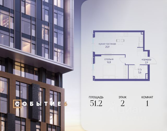 • ✓ В базе Циан 1 квартир-студий на 7 этаже в районе Раменки в Москве