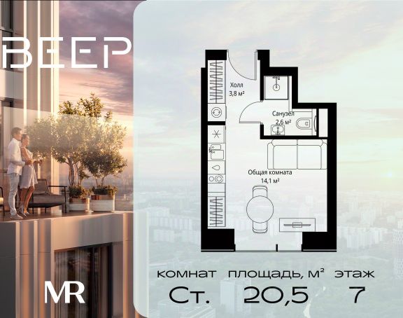 Прямая продажа от застройщика. Продаётся студия общей площадью 20.50 м² с предчистовой отделкой в ЖК Веер на 7-м этаже 46 этажного дома. ВЕЕР — это жилой квартал бизнес-класса в престижном ЗАО Москвы всего 5 минут до Кутузовского проспекта. 15 минут — до центра столицы, Переделкино или Сколково. Рядом — крупнейший природный заказник "Долина реки Сетунь", а в пешей доступности — новая проектируемая станция метро. Здесь всё необходимое для жизни находится в шаговой доступности: например, офисный и спортивный кластеры, государственная рейтинговая школа 1329 и детский сад, фитнес и ресторанный бульвар. • Концепция 15-минутного города ВЕЕР реализует идею "города в городе": внутри квартала появятся офисный и спортивный кластеры, своя государственная рейтинговая школа 1329 и детский сад, центры творчества, ресторанный бульвар, фитнес и спа-центр с 25-метровым бассейном. Здесь будет всё — от салонов красоты и банков до медицинских центров и фуд-холла. Для активного отдыха — 25-километровый беговой маршрут, школа единоборств и йога-студия прямо в комплексе. • Архитектура и планировки Первая очередь ВЕЕР.1 — это 5 разновысотных башен, объединённых стилобатом с благоустроенным закрытым двором без машин. Авторская архитектура от бюро СПИЧ, известного по таким знаковым проектам как новое здание Третьяковской галереи в Москве и Музей архитектурного рисунка в Берлине, создаёт динамичный силуэт квартала. Более 200 типов продуманных планировок: квартиры с видовыми террасами, мастер-спальнями, панорамными окнами и даже смотровой площадкой на крыше. Малоэтажные уютные секции с 25 квартирами на этаже и с эксплуатируемой кровлей подойдут тем, кто ищет уединения. Предчистовая отделка white box по стандартам MR обеспечивает быстрое заселение и тишину в корпусах. • Элегантные лобби и зеленые дворы В каждом лобби — дизайнерская отделка от Jaime Beriestain Studio, премиальные материалы, уютные зоны для общения, коворкинги, студии йоги, лапомойки и просторные колясочные. В закрытых дворах царит гармония природы и жизни: всесезонный чайный домик, кленовая роща, площадь с прудом и беседкой, амфитеатром и библиотекой. Для детей — образовательные игровые площадки "Археология" и "Ботаника". • Спорт и досуг Трёхуровневый фитнес и СПА-центр на 4000 кв.м с 25-метровым бассейном под прозрачной крышей, кардио- и силовыми залами, а также пространством для групповых занятий — всё это прямо в доме. • Инженерия и безопасность ВЕЕР оснащён умной инженерией: скоростные лифты премиум-класса Sword, современная система вентиляции, двухуровневый паркинг на 695 машино-мест с прямым доступом из лобби, зарядками для электромобилей, кладовыми и велопарковками. Отдельный вход для курьеров и современные системы охраны обеспечивают абсолютную безопасность жителей.