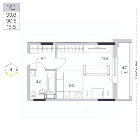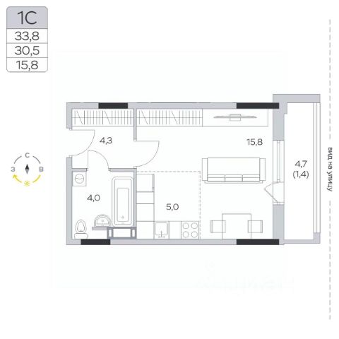 Продаётся студия в сданном доме (Корпус 15), срок сдачи: III-кв. 2024, общей площадью 28.6 кв.м., на 8 этаже.