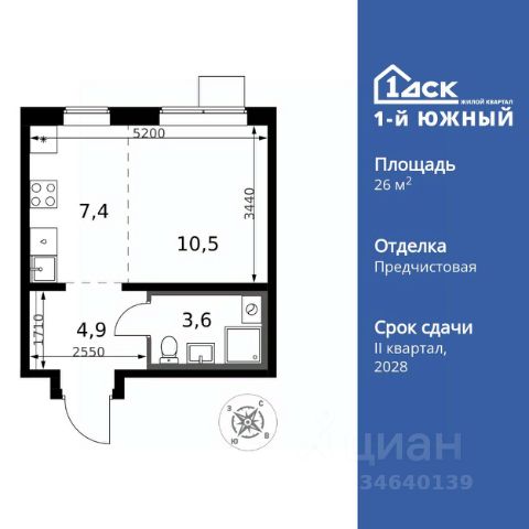 Прямая продажа от застройщика! Жилой Комплекс класса Комфорт Плюс. Продаётся квартира-студия номер 769 общей площадью 26.4 кв.м. на 8-м этаже 25 этажного здания. Предчистовая отделка. Цена с учётом скидки. Особенности квартиры: - МЦД-5 в пешей доступности - Квартал с южным садом - Свои 3 детских сада и 2 большие школы - Организуем показ в удобное для вас время! - Линейная планировка - максимальная функциональность и удобство. - Увеличенное количество окон - дополнительное освещение и свежий воздух. - Линейная кухня - функциональность и практичность в одном решении. - Ниша под шкаф - компактное и удобное место для вещей. Квартира с предчистовой отделкой. Вам не придется заниматься черновыми и трудоёмкими работы, а чистовую отделку и дизайн - сделайте на свой вкус. Информация о комплексе: ЖК от 1-го ДСК: евро формат, большие застеклённые лоджии и умный дом. Управляйте светом и техникой через Яндекс.Станцию, защита от протечек. Удачная локация: транспортная доступность и природа рядом. В каждом дворе - плодовые деревья, весной цветут яблони и груши, зимой - лыжня среди заснеженного леса. Транспортная доступность: - Общественный транспорт: Действующая ж/д станция Булатниково (в перспективе будущая МДЦ D5) в пешей доступности, всего 10-12 минут. - Личный автотранспорт: Удобный выезд на трассу М4-Дон в сторону Москвы и области 850 м, до МКАД - 1 км Внутренняя инфраструктура: "1-й Южный": продуманные подъезды с панорамным остеклением и входами с улицы и двора. Безбарьерная среда для родителей с колясками и маломобильных жителей. В каждом подъезде - колясочные, лапомойки, санузлы, место для консьержа. На территории: 3 детских сада и 2 школы под окнами, пешеходный бульвар-дендрарий для прогулок, центральная площадь для мероприятий. Всё для комфортной жизни, общения и активностей в шаговой доступности. Квартира с предчистовой отделкой - ваш дизайн без черновых работ