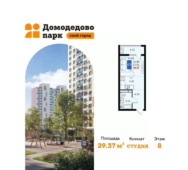 Продаётся квартира-студия площадью 29,6 кв.м на 8 этаже 24 этажного дома (Корпус 3.5, Секция 2) проекта ПИК Кавказский бульвар 51. Светлый просторный подъезд на уровне земли, функциональная планировка, большие окна, предчистовая отделка. "Кавказский бульвар 51" — современный жилой квартал в районе Царицыно. Проект частично реализован. "Кавказский бульвар 51" находится в районе Царицыно, недалеко от одноимённого музея-заповедника. До метро "Кантемировская" — 17 минут пешком. За 20 можно дойти до станции "Чертаново". В 10 минутах на машине — МКАД, в 11 минутах — Варшавское шоссе, а в 16 минутах — ТТК. В проекте жилые дома высотой от 5 до 33 этажей, детский сад и школа. На первых этажах доступны магазины, кафе, салоны красоты и другие сервисы — чтобы купить кофе и свежий хлеб к завтраку, можно просто спуститься на лифте. В уютных дворах-парках есть места для отдыха и детские площадки. Для прогулок на свежем воздухе мы построим для жителей широкий пешеходный бульвар. В районе вокруг "Кавказского бульвара 51" есть всё для комфортной жизни: детские сады, школы, поликлиники, магазины и торговые центры. Девять минут на машине — и вы у музея-заповедника "Царицыно", где можно гулять среди исторических построек, лежать на траве под тенью деревьев или заниматься спортом на специальных площадках. Есть парки и поближе: до Аршиновского можно дойти за 8 минут, а до парка "Сосенки" — за 13 минут. Артикул 998562 (Застройщик АО "СПЕЦИАЛИЗИРОВАННЫЙ ЗАСТРОЙЩИК "ТОРГОВЫЙ ДОМ СПУТНИК")